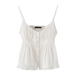 Brandy 复古bm吊带碎花纽扣花边V领女背心荷花边内搭上衣 Girl美式