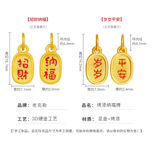 老克勒黄金硬金招财纳福牌吊坠足金手链手串项链项坠挂坠配饰女
