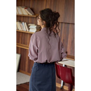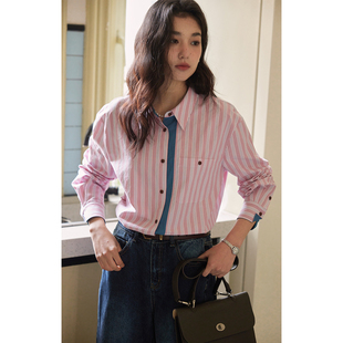 法式 磨毛长袖 复古撞色竖条纹衬衫 2025新款 上衣 女秋季 solighter