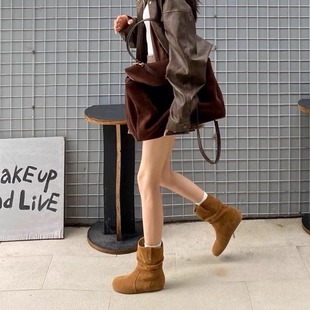 牛皮版 内增高复古短靴女2025秋冬西部马丁靴圆头短筒勃肯堆堆靴