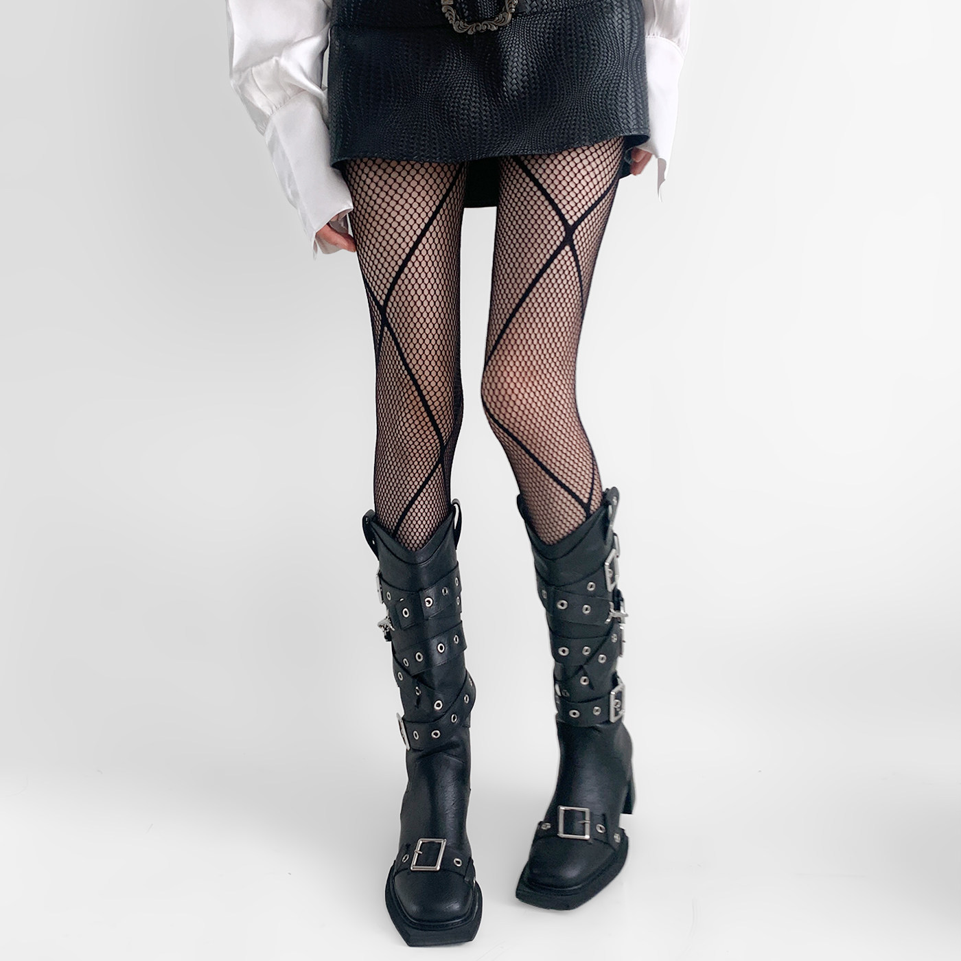 防勾丝条纹黑色渔网袜子黑丝 夜间教习室菱格丝袜女春秋款 清仓