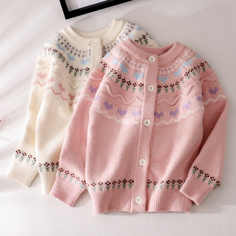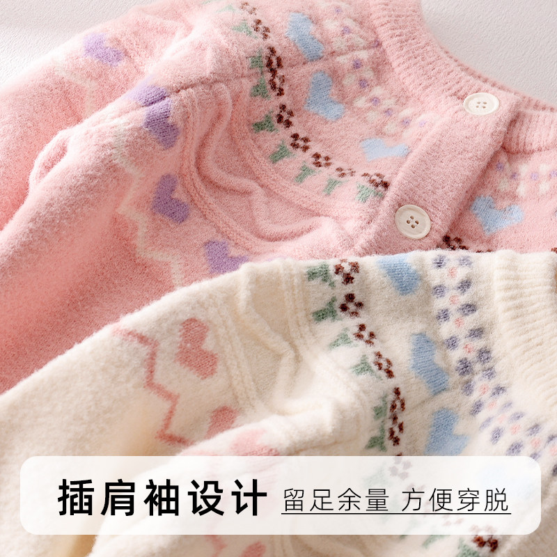 女孩提花上衣 儿童加绒加厚毛线衣开衫 女童针织外套春秋款 洋气童装