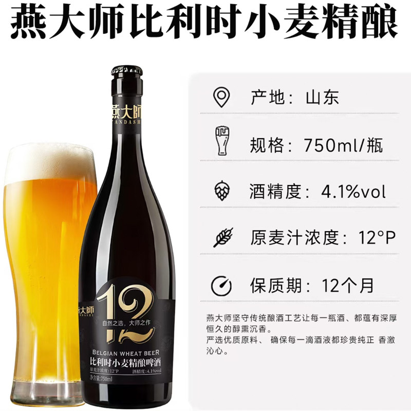 燕大师12°比利时小麦啤酒750ml 6瓶原浆精酿小麦全麦整箱聚会