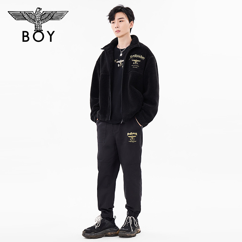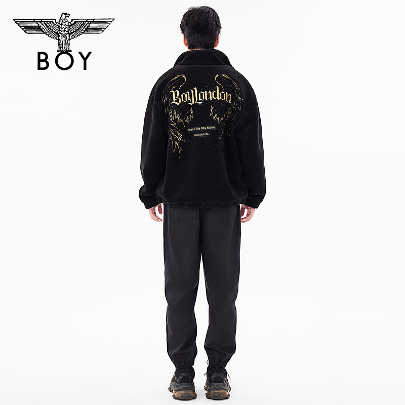 BOYLONDON冬男女同款 黑金潮牌黑色宽松保暖外套N23804