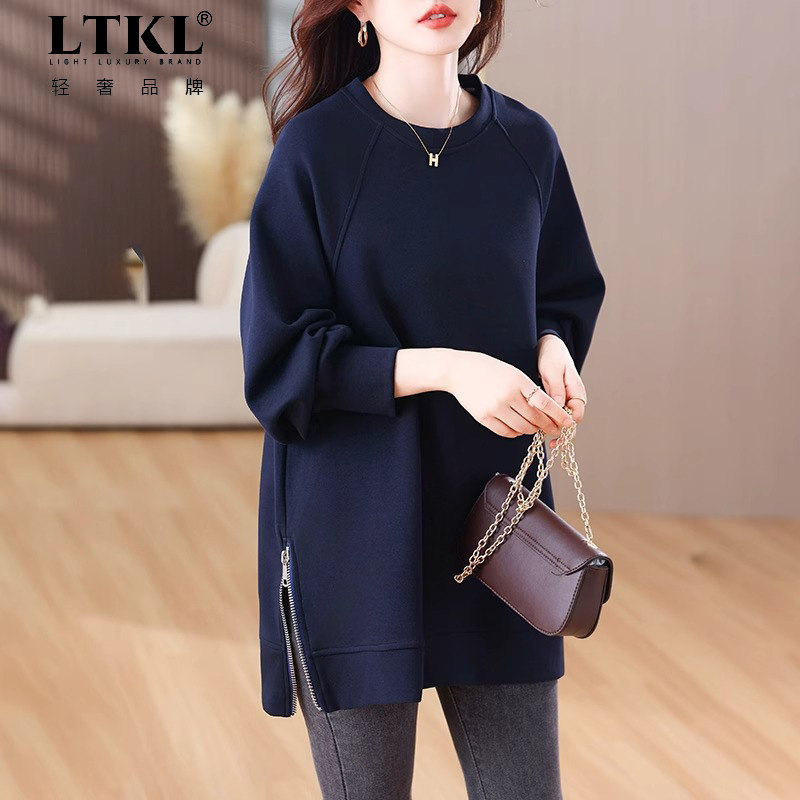 加绒卫衣女遮屁股2024春秋款 胖mm时尚 新款 大码 洋气上衣 爆款 中长款