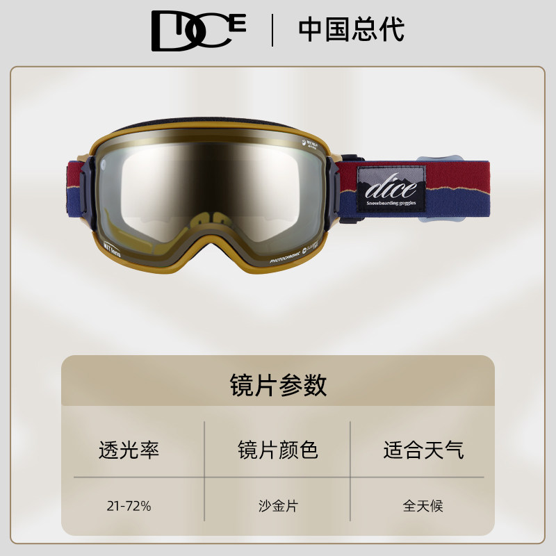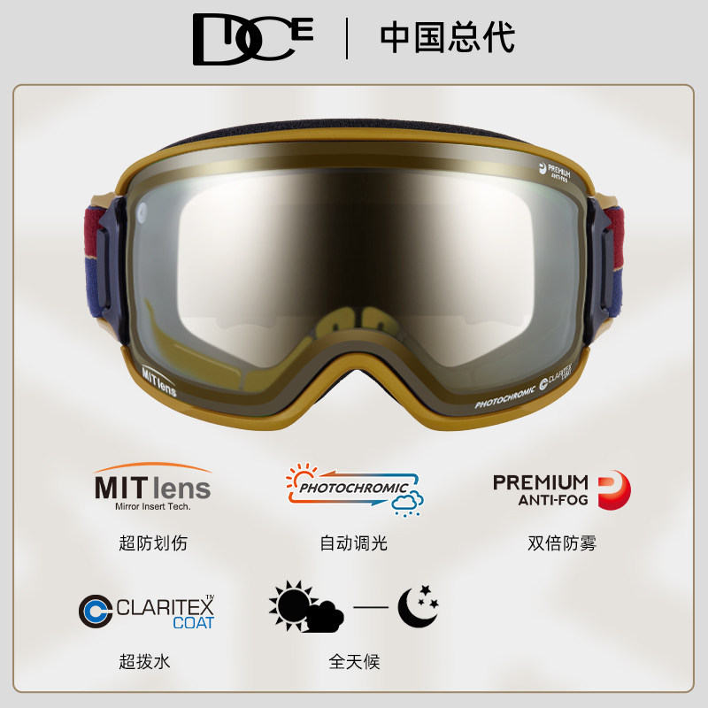 日本DICE滑雪镜开窗防划伤调光变色2倍防雾1秒除雾25新款 BK7306