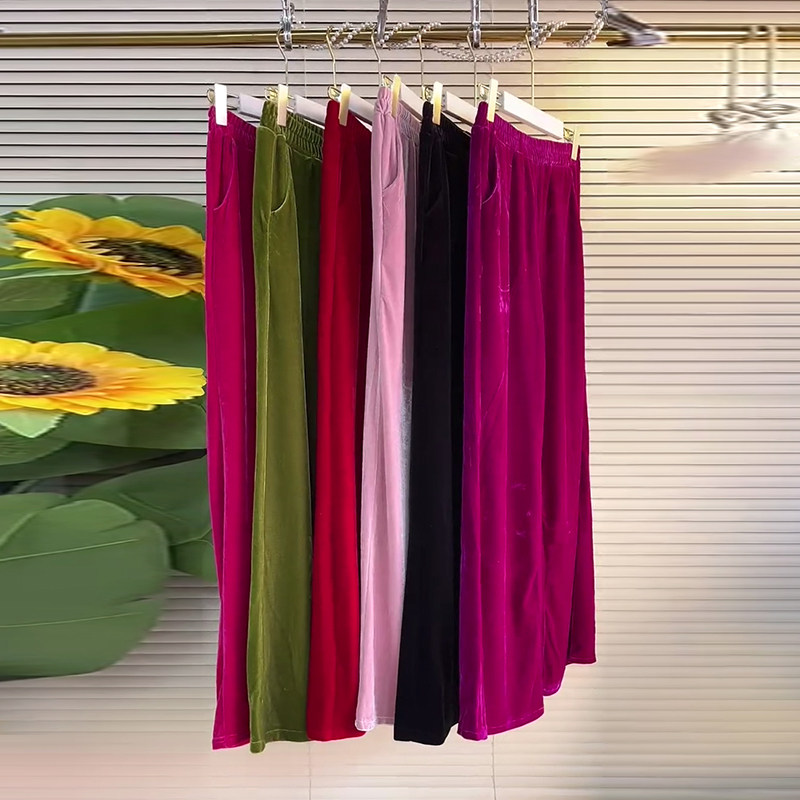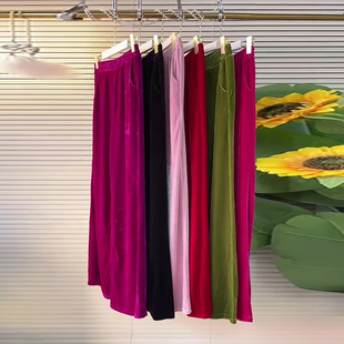 子 女秋冬加绒高腰垂感直筒拖地休闲裤 300斤胖mm大码 雪尼尔阔腿裤