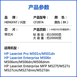 HP87A M501dn M527dn打印机墨粉盒M527z dnm M506dn M501硒鼓CF287a墨盒M506n hengfat适用惠普