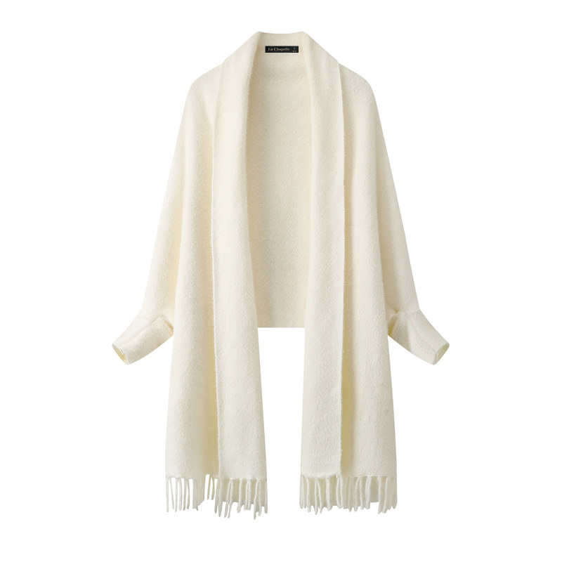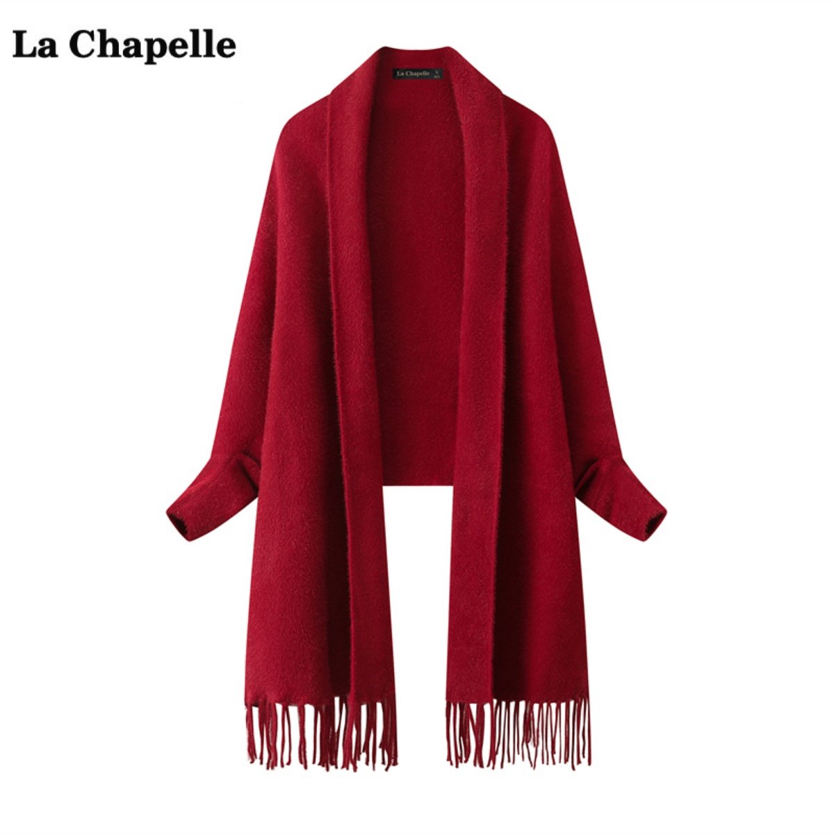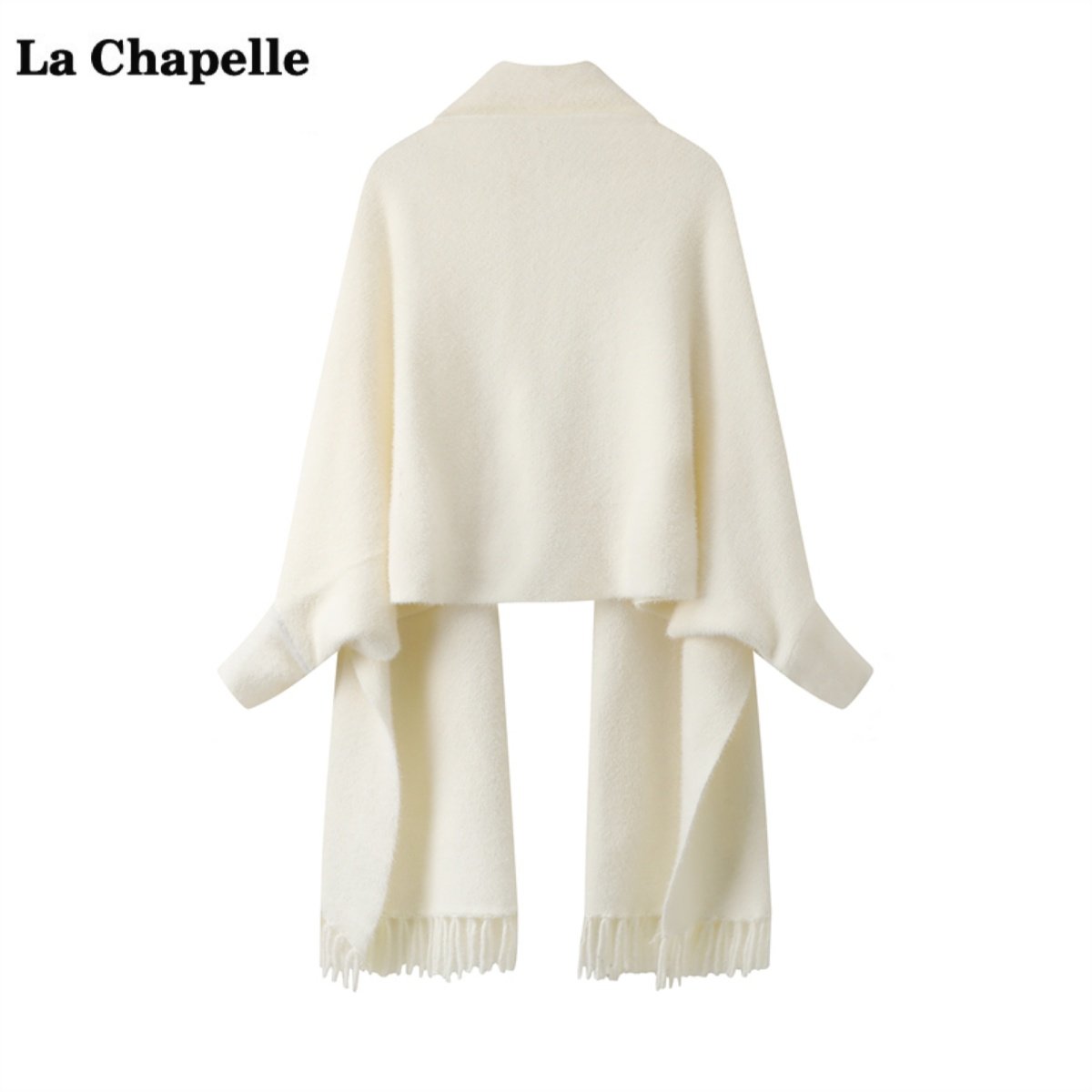 子斗篷披肩女保暖流苏围巾针织披风外搭 Chapelle带袖 拉夏贝尔