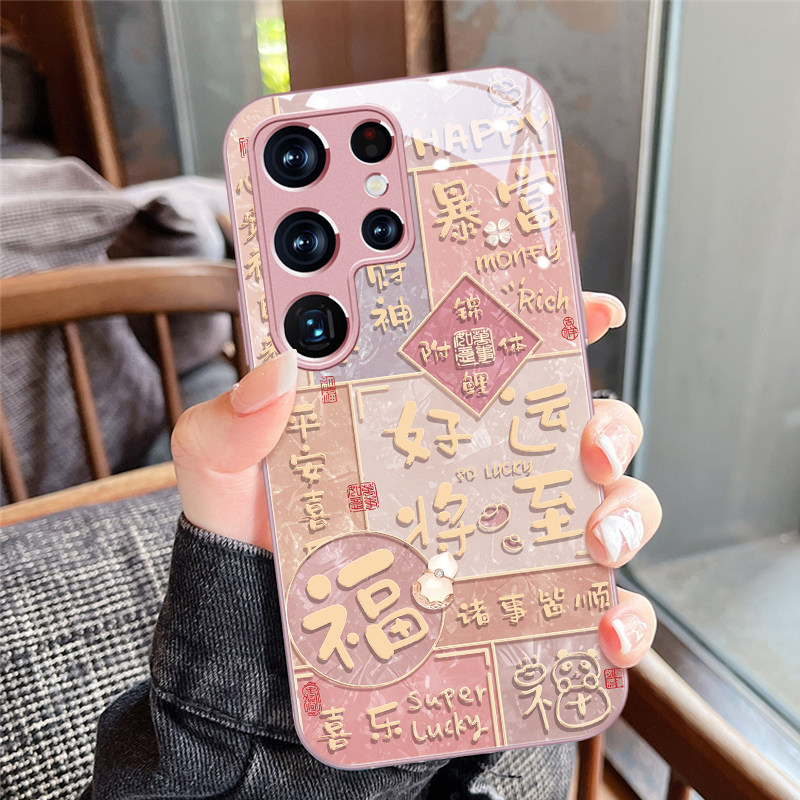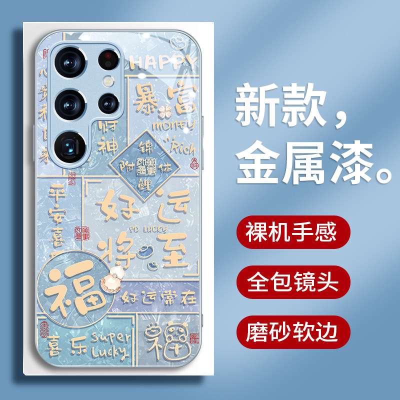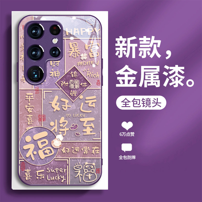 好运将至三星s25手机壳s24ultra个性 高档s21fe金属漆玻璃note20潮牌A71保护套s10男女s20 创意s23福气熊猫s22