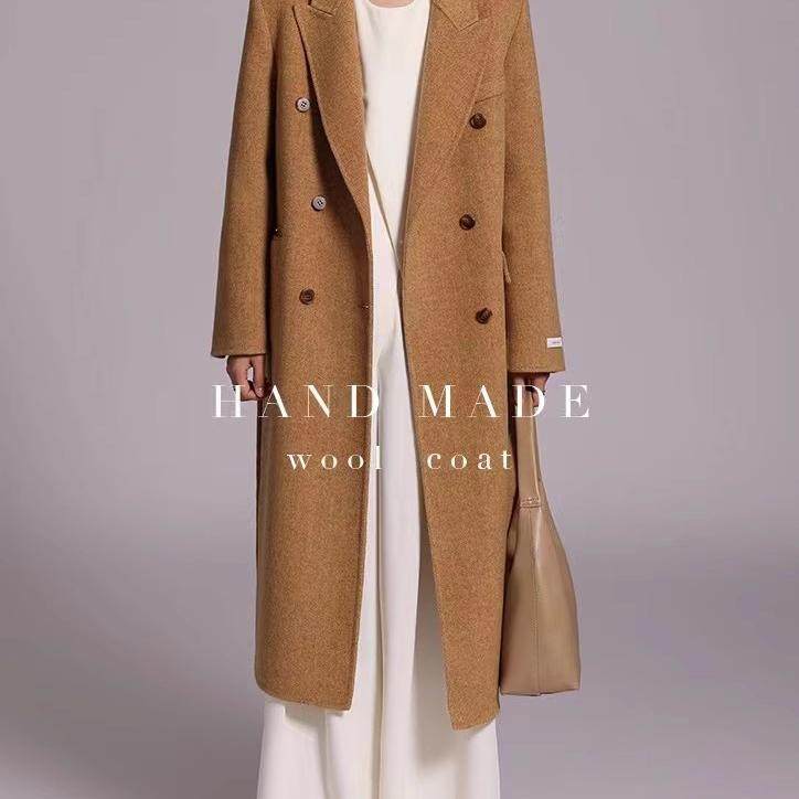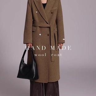 西装 过膝双面羊绒外套 领毛呢子风衣 中长款 纯羊毛双面呢大衣男士