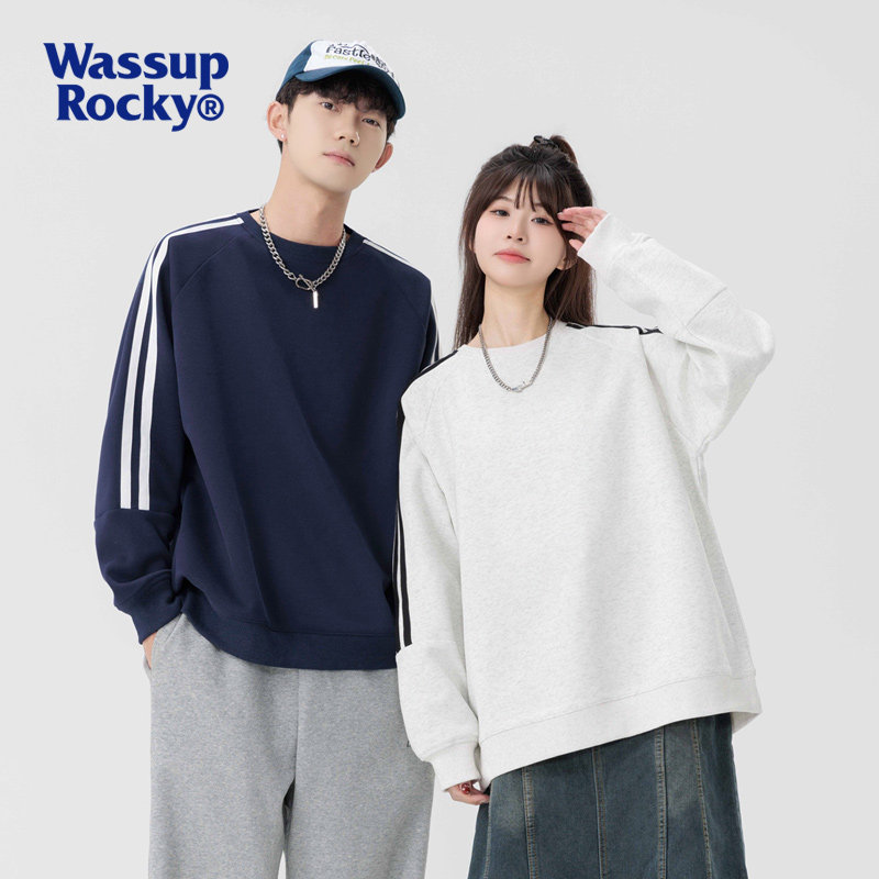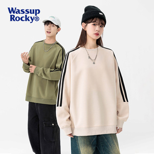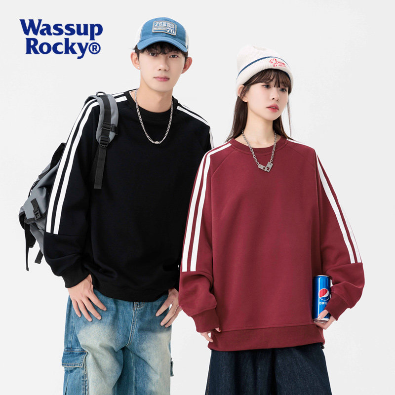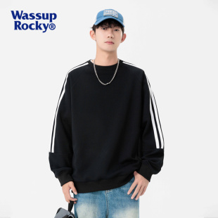 潮牌圆领打底衫 卫衣男秋冬新款 宽松休闲上衣 ROCKY条纹长袖 WASSUP