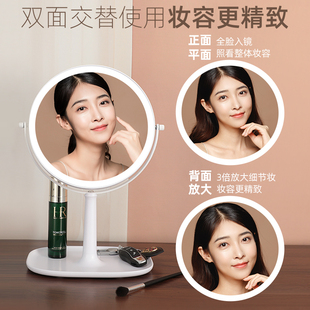 镜子化妆镜桌面台式 带灯LED家用卧室补光镜梳妆台圆镜子高清温馨