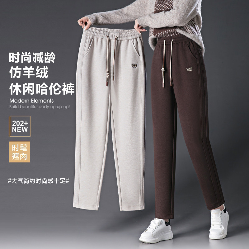 女款 neverme加绒直筒运动休闲裤 高腰长裤