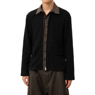 衬衫 Layering华夫格短宽长袖 killer 拼格子层次感上衣夹克