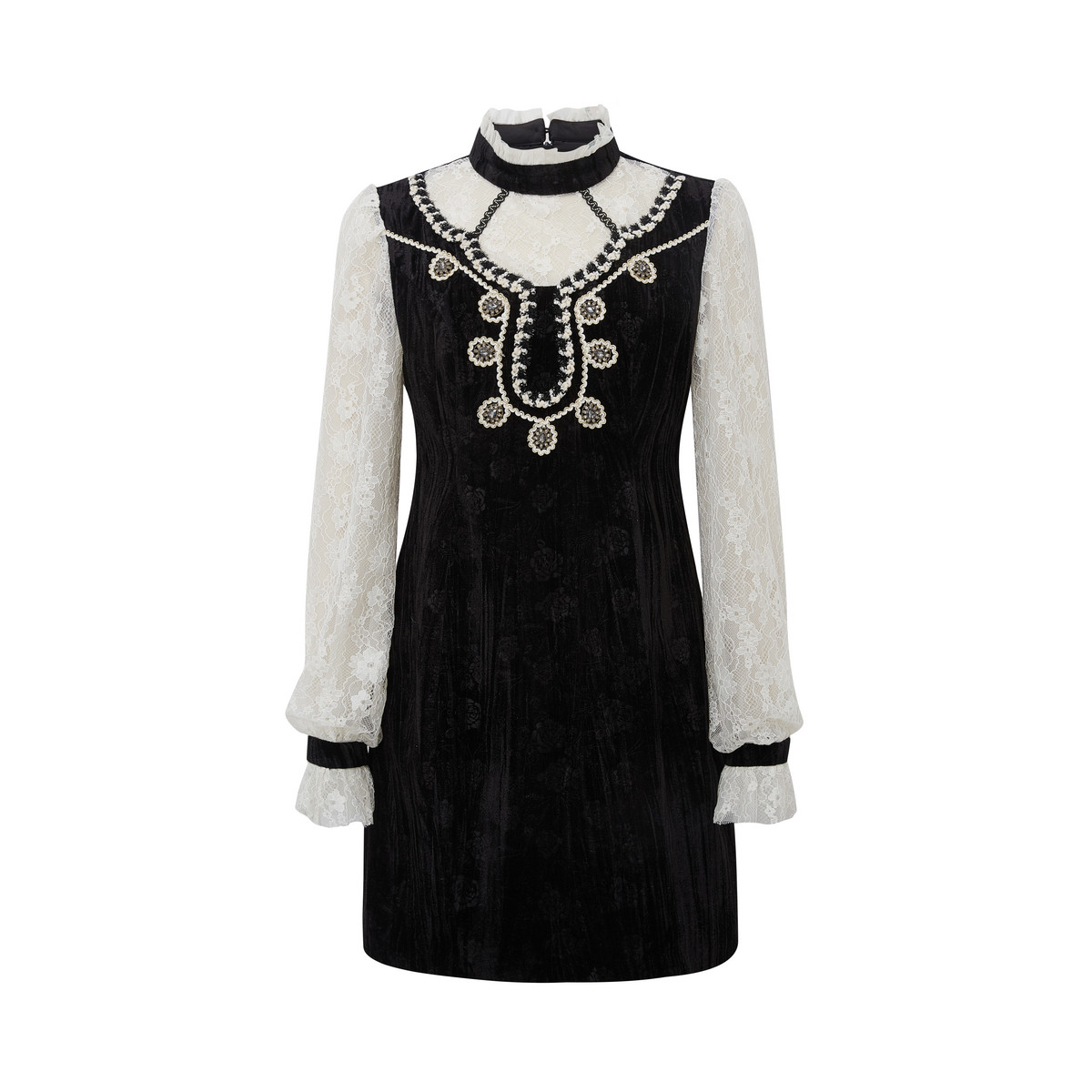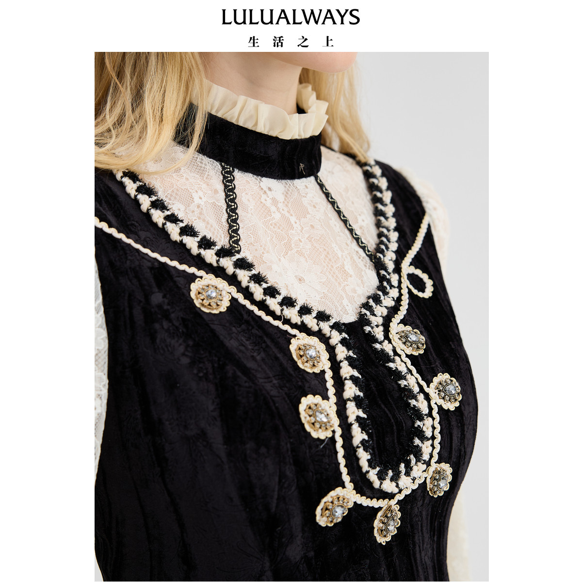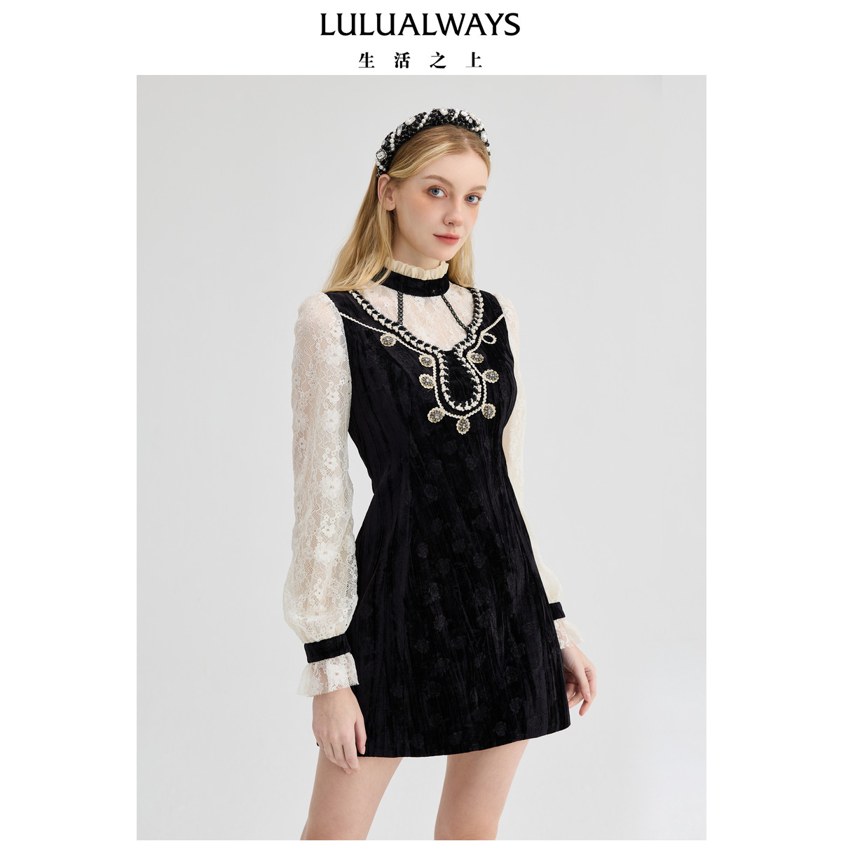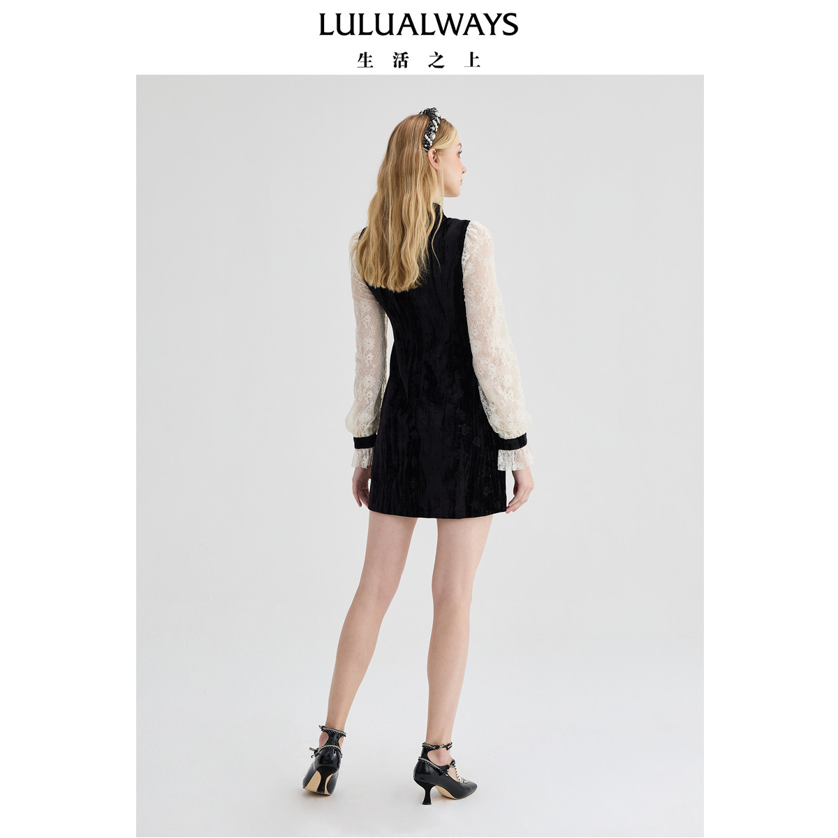 优雅暗纹压花丝绒短款 LULUALWAYS 新款 冬季 连衣裙女 商场同款