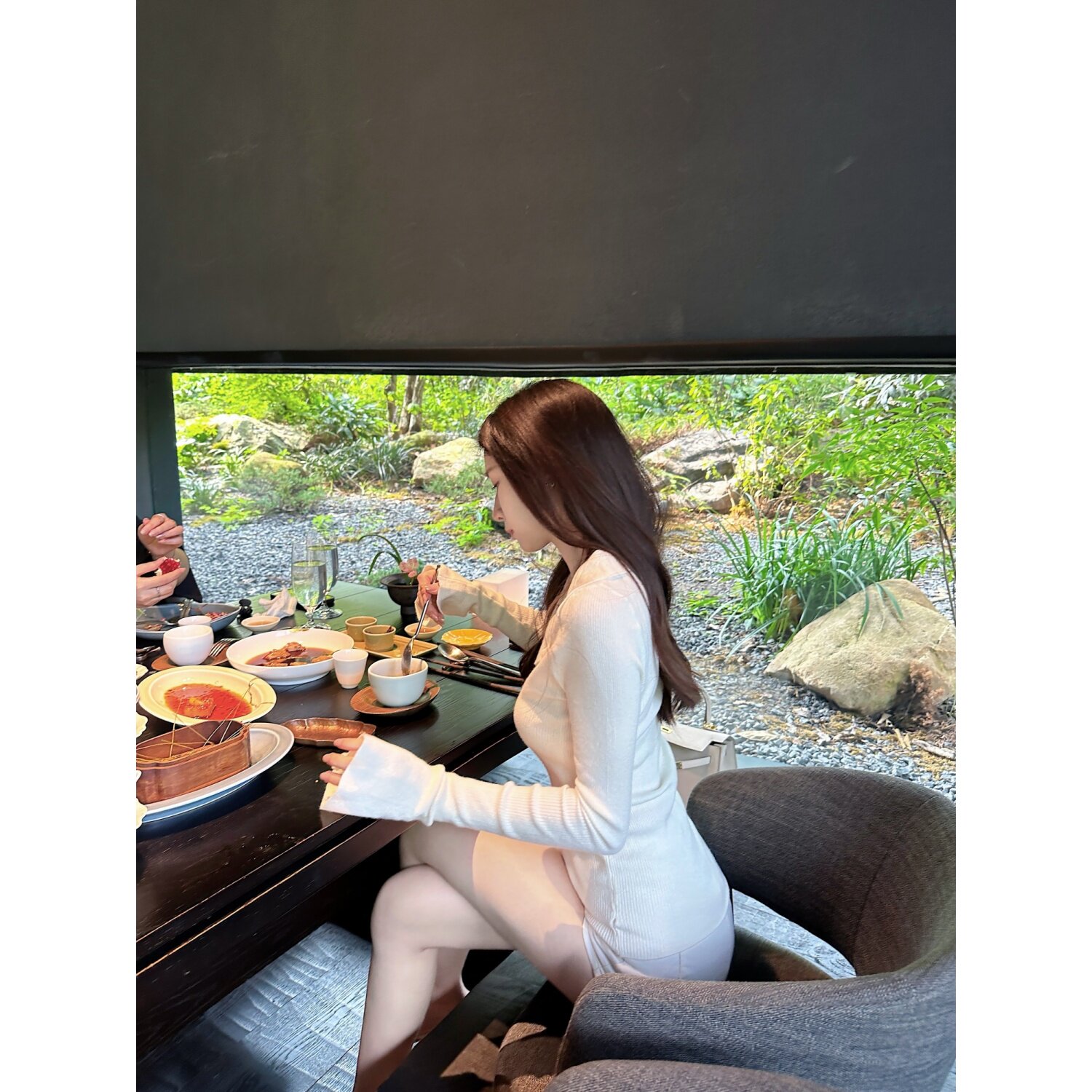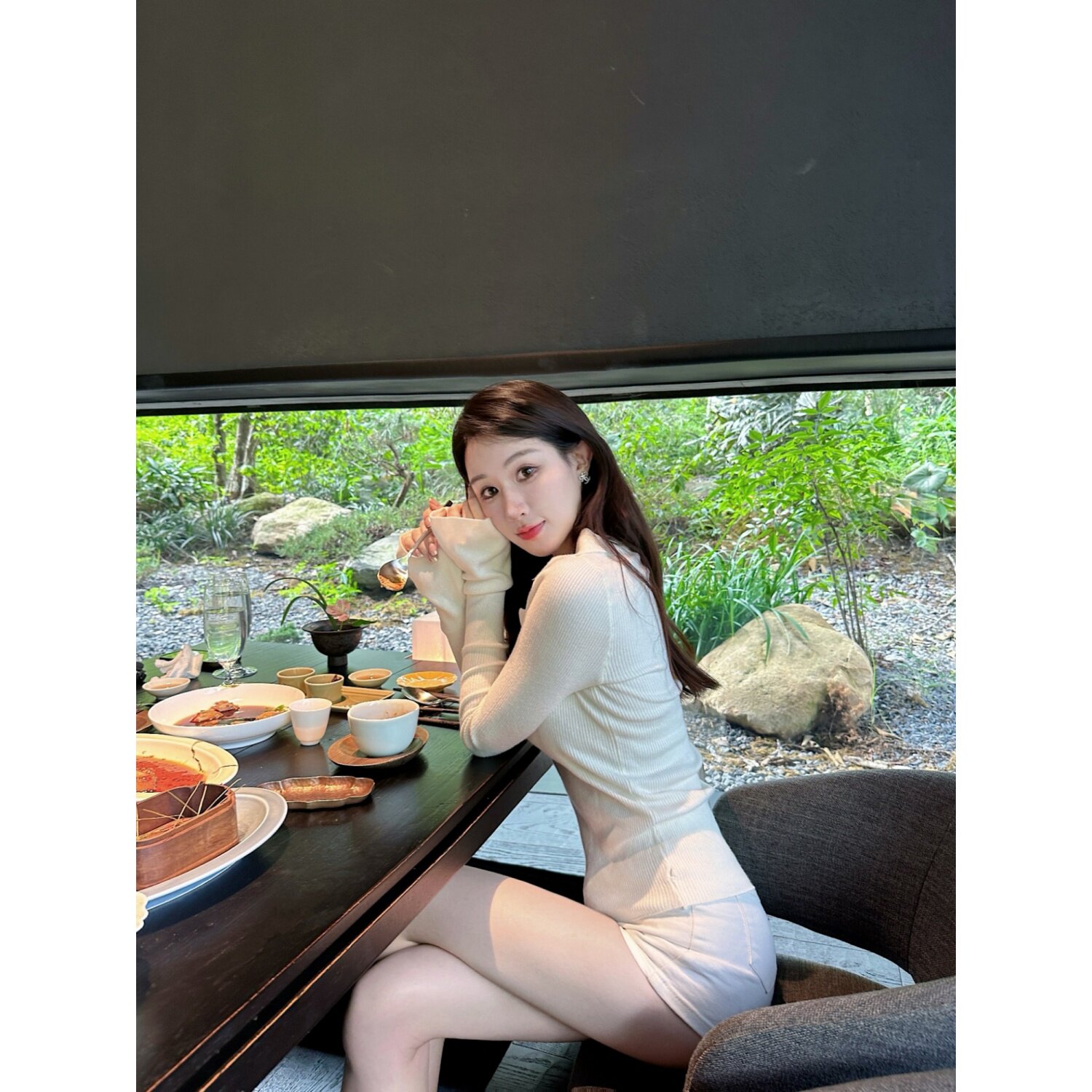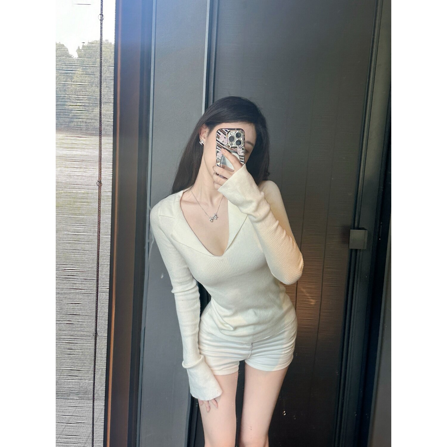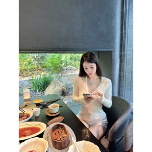 Dear 长袖 zhazha 米白色Polo领大V领修身 针织打底衫 氧气千金