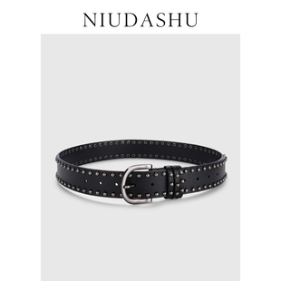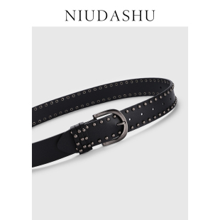 腰带女 免打孔铆钉小众时髦设计INS风配牛仔裤 皮带女真皮装 饰春季