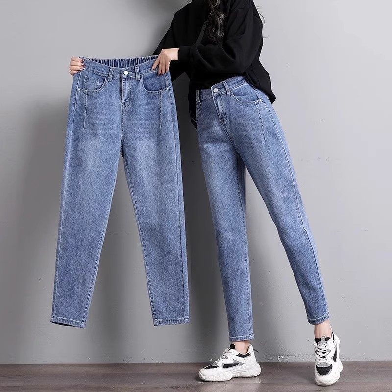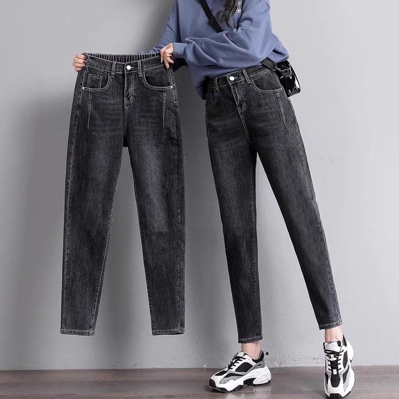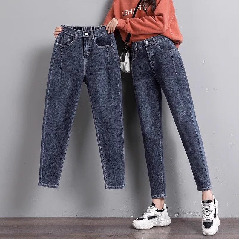 原牛蓝阔腿裤 」松紧腰丹宁加绒弯刀牛仔裤 X3「遛狗裤 化学少女