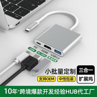 pd供电转换器 外贸 usb c转hdmi三合一拓展坞 4K扩展坞定制 type