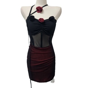 暗夜红玫瑰 显瘦背心包臀裙酒吧gogo 挂脖抹胸连衣裙心机辣妹修身
