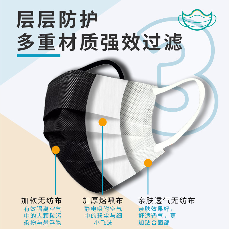 独立包装 黑色口罩一次性防尘透气男女加厚时尚 款