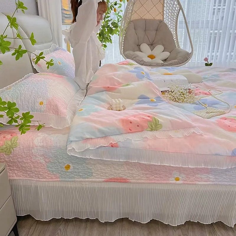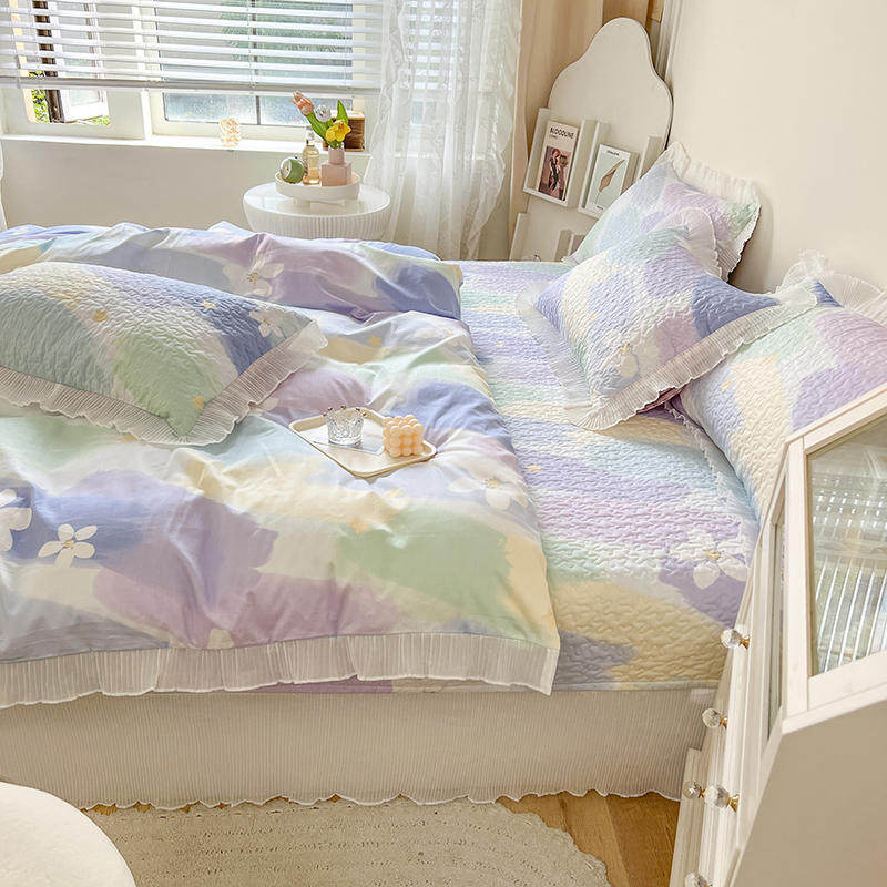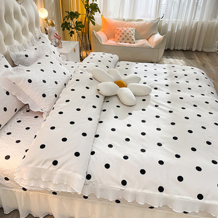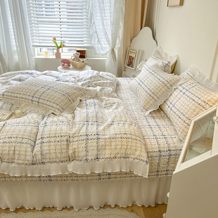 直播同款 纯棉床盖四件套公主风荷叶花边床单全棉三件套床上用品