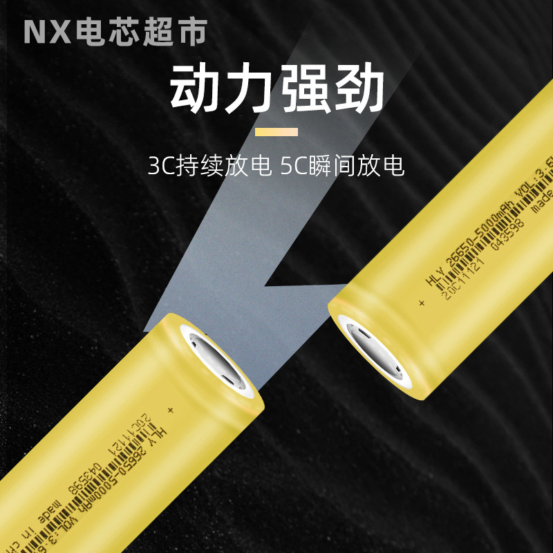 26650锂电池大容量5000mAh动力电芯可充电强光手电筒电池3.6V足容