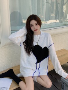 女中长款 春装 设计感慵懒风爱心针织衫 韩版 宽松毛衣 新款