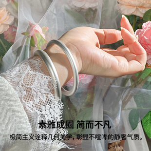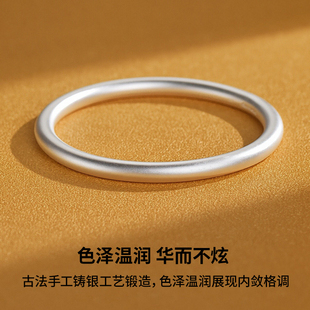 足银9999纯银手镯光面推拉手环男女情侣款 简约足银实心银镯子礼物