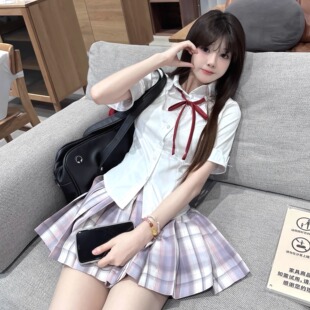 裙 原创JK制服日系学院风格 朝思格裙 百搭浅紫格 神仙club