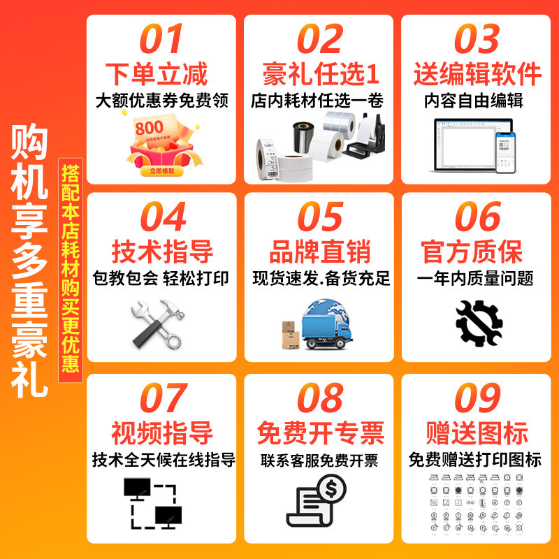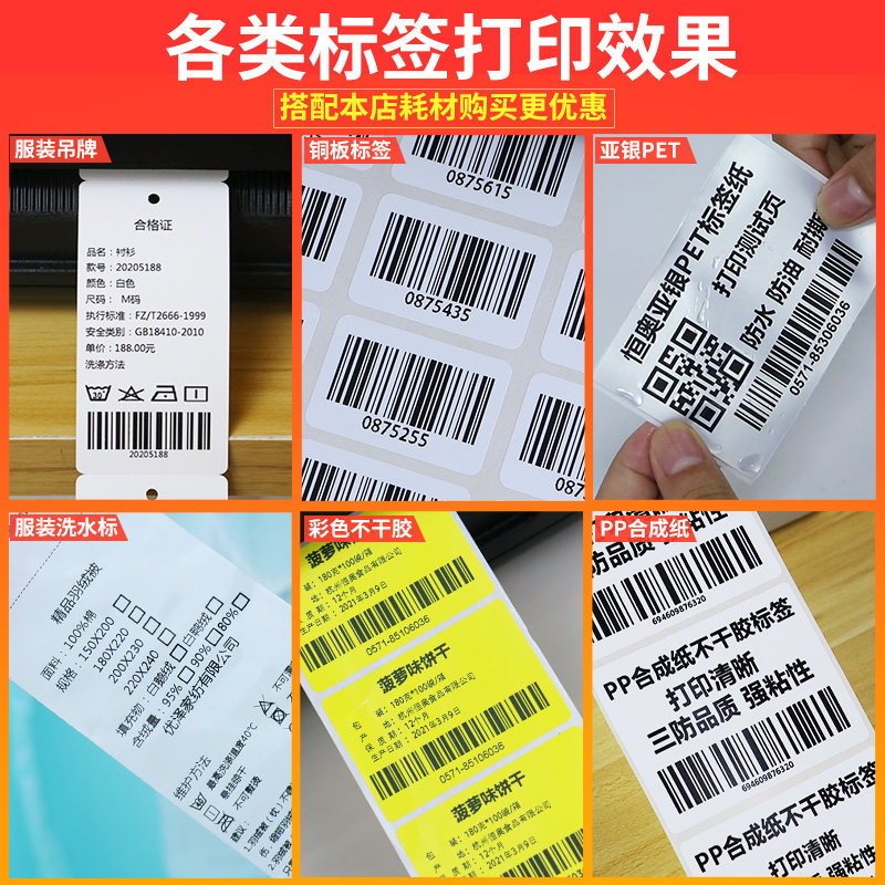 吊牌合格证铜版 标签打印机服装 纸亚银不干胶打印 4503E条码 TSC