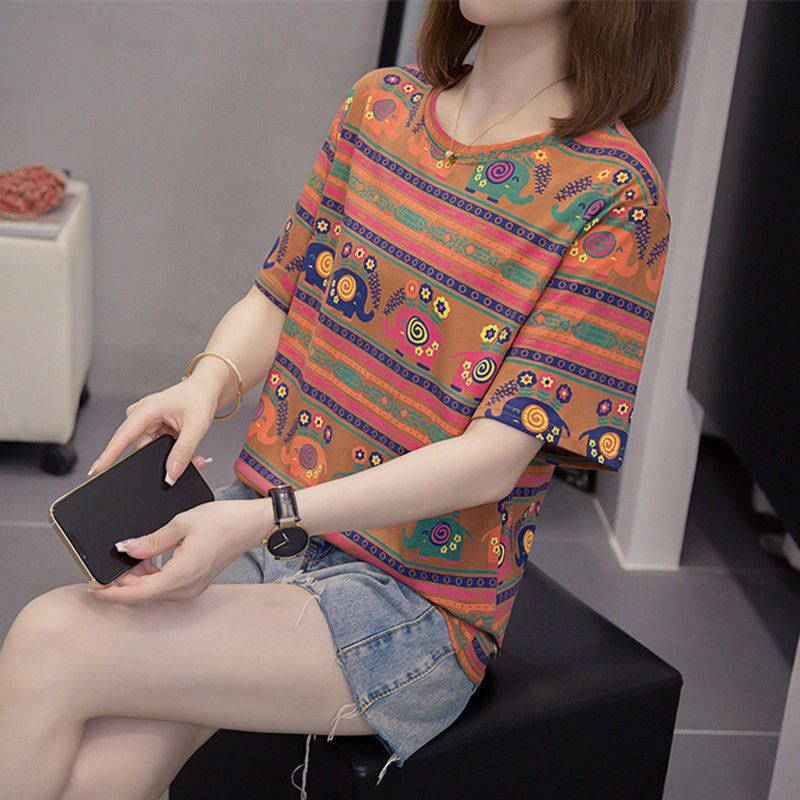 纯棉上衣女胖mm宽松显瘦遮肚子短袖 2025夏装 时尚 加大码 T恤女 新款