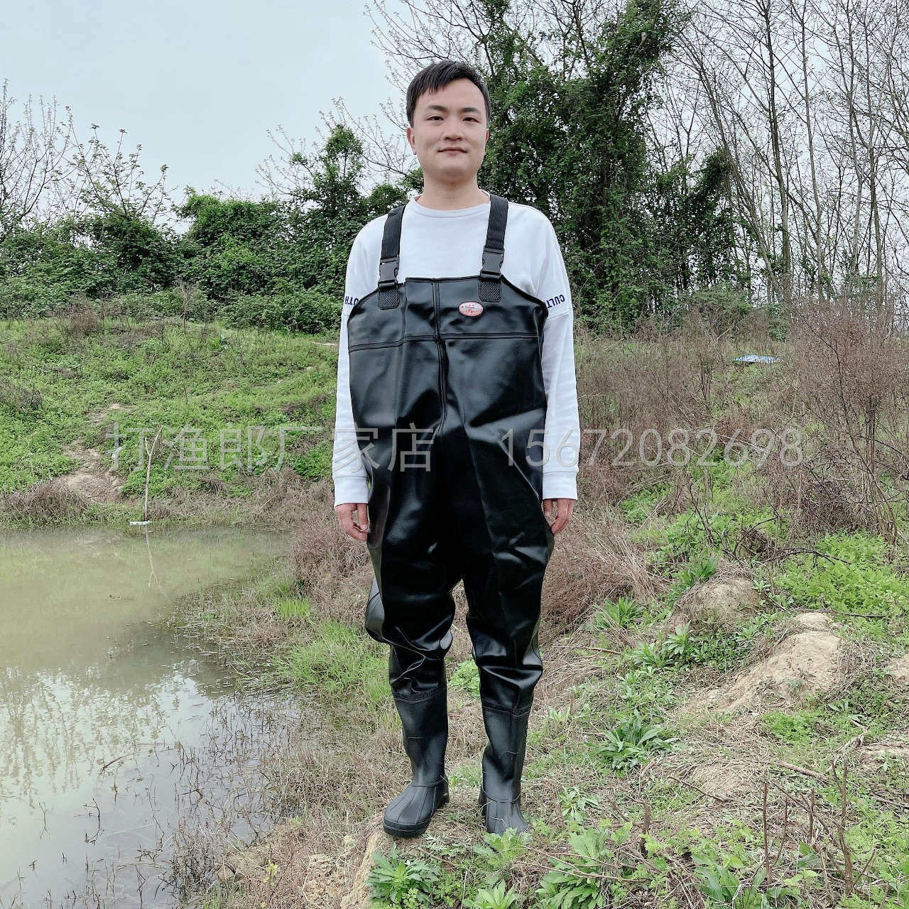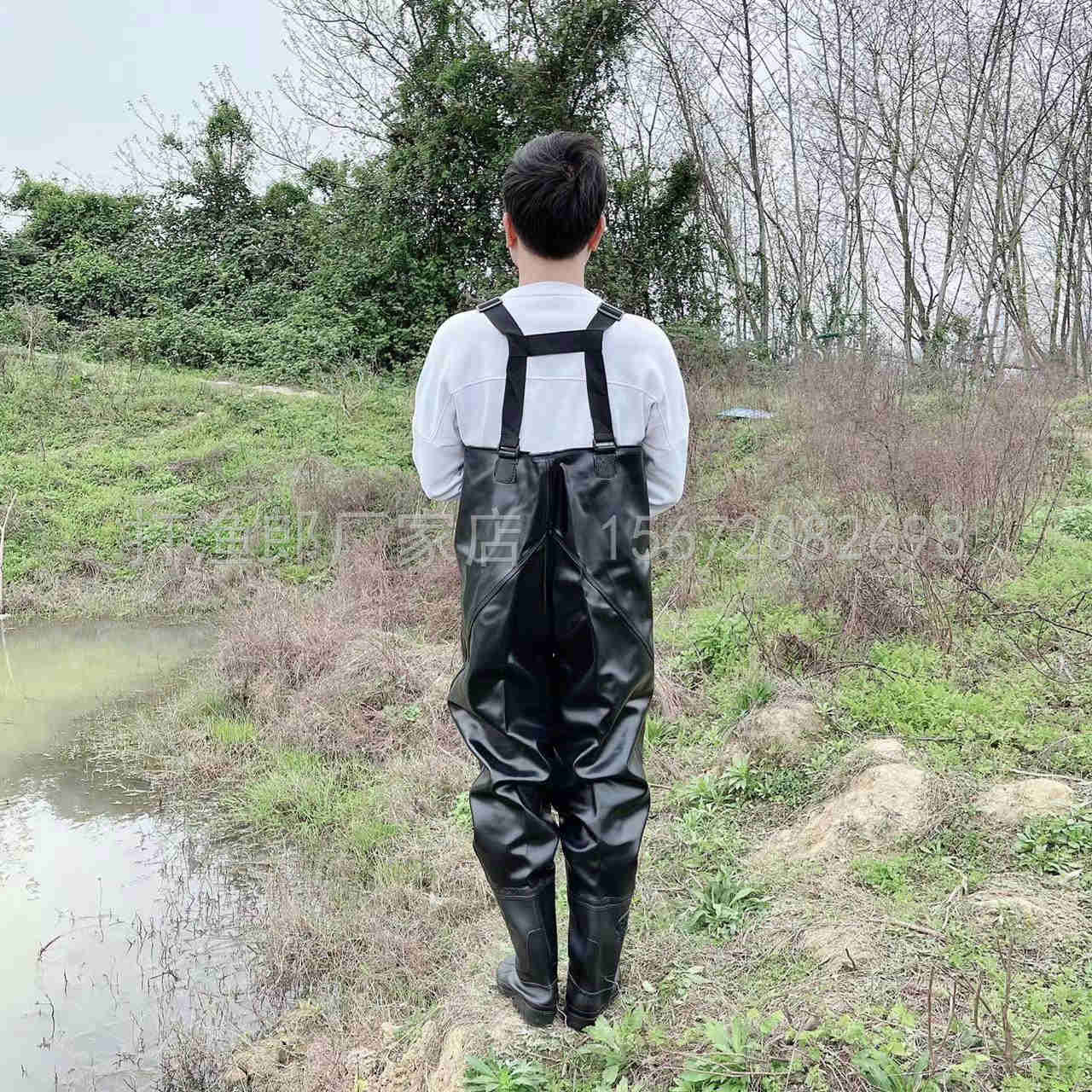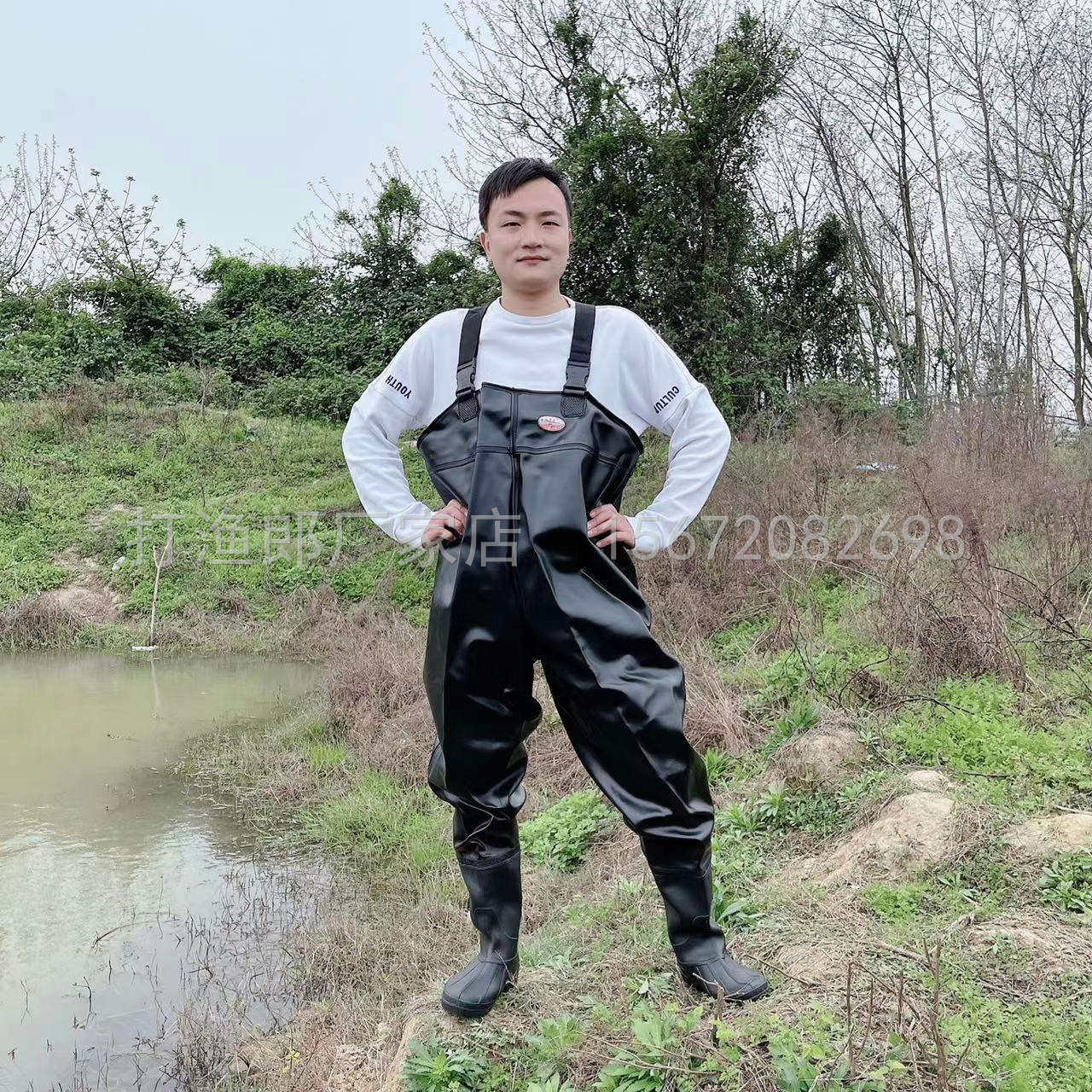 防水衣服水鞋 带雨鞋 半身连体皮叉补抓鱼 专业水库雨裤 打渔郎下水裤