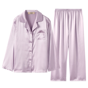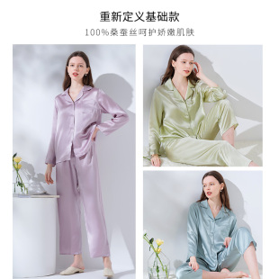 美标长袖 多色女玻尿酸美肤缎春秋桑蚕丝睡衣丝绸家居服夏 真丝套装