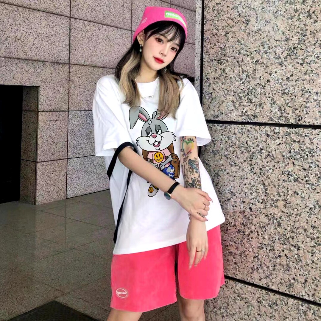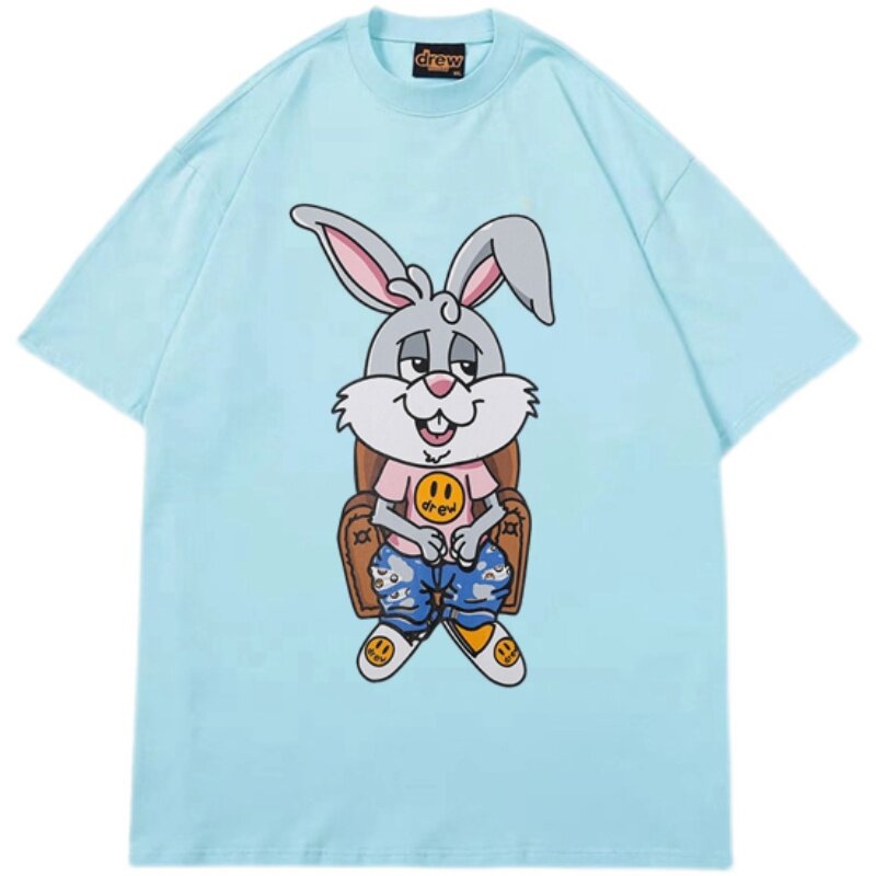 Drew卡通兔子短袖 纯棉上衣 T恤男潮牌高街贾斯汀比伯宽松情侣夏季
