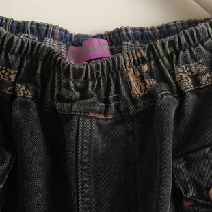 7222 街头感重工酵洗斜门襟两色牛仔阔腿裤 鹿与飞鸟 超有态度