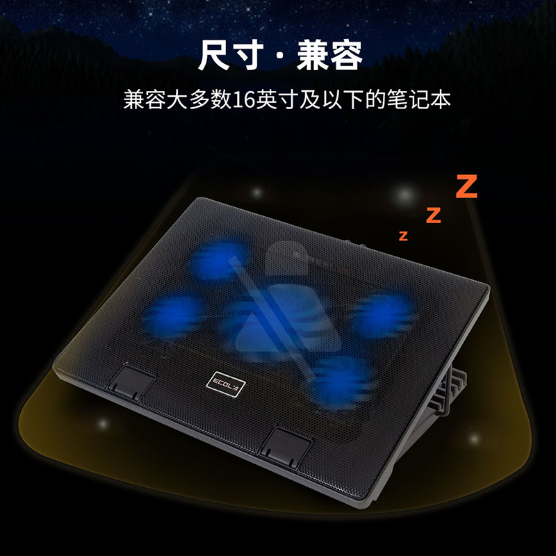 风速可变NBC 笔记本电脑散热器15.6英寸游戏本散热 905BK ECOLA 宜客莱