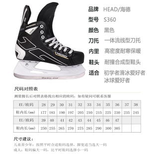 HEAD海德S360冰球冰刀鞋 真冰溜冰 成人专业比赛球刀男女儿童滑冰鞋