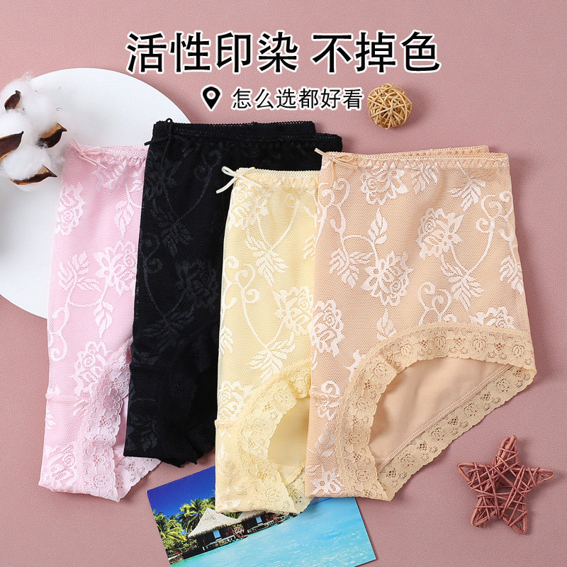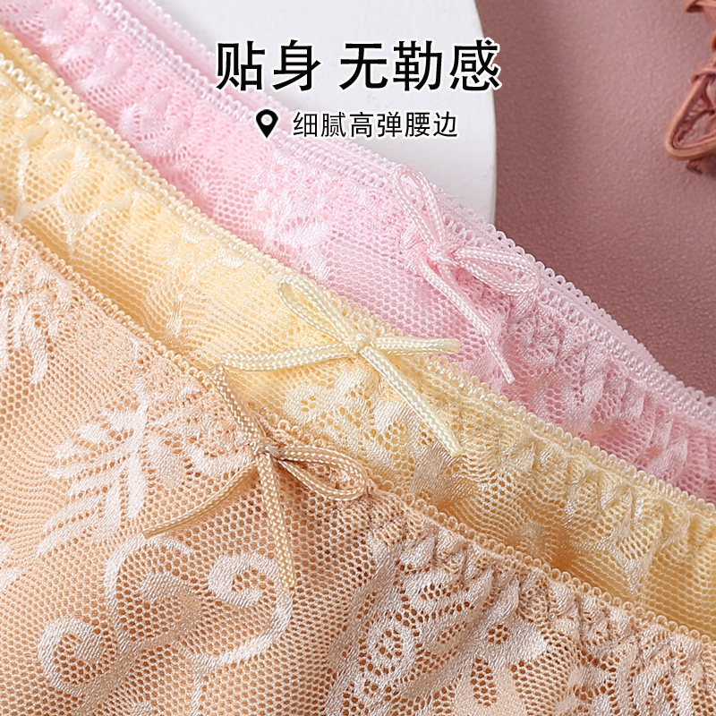 头夏 无痕平角裤 蝶安芬女士内裤 女透气纯棉性感蕾丝网纱中高腰大码