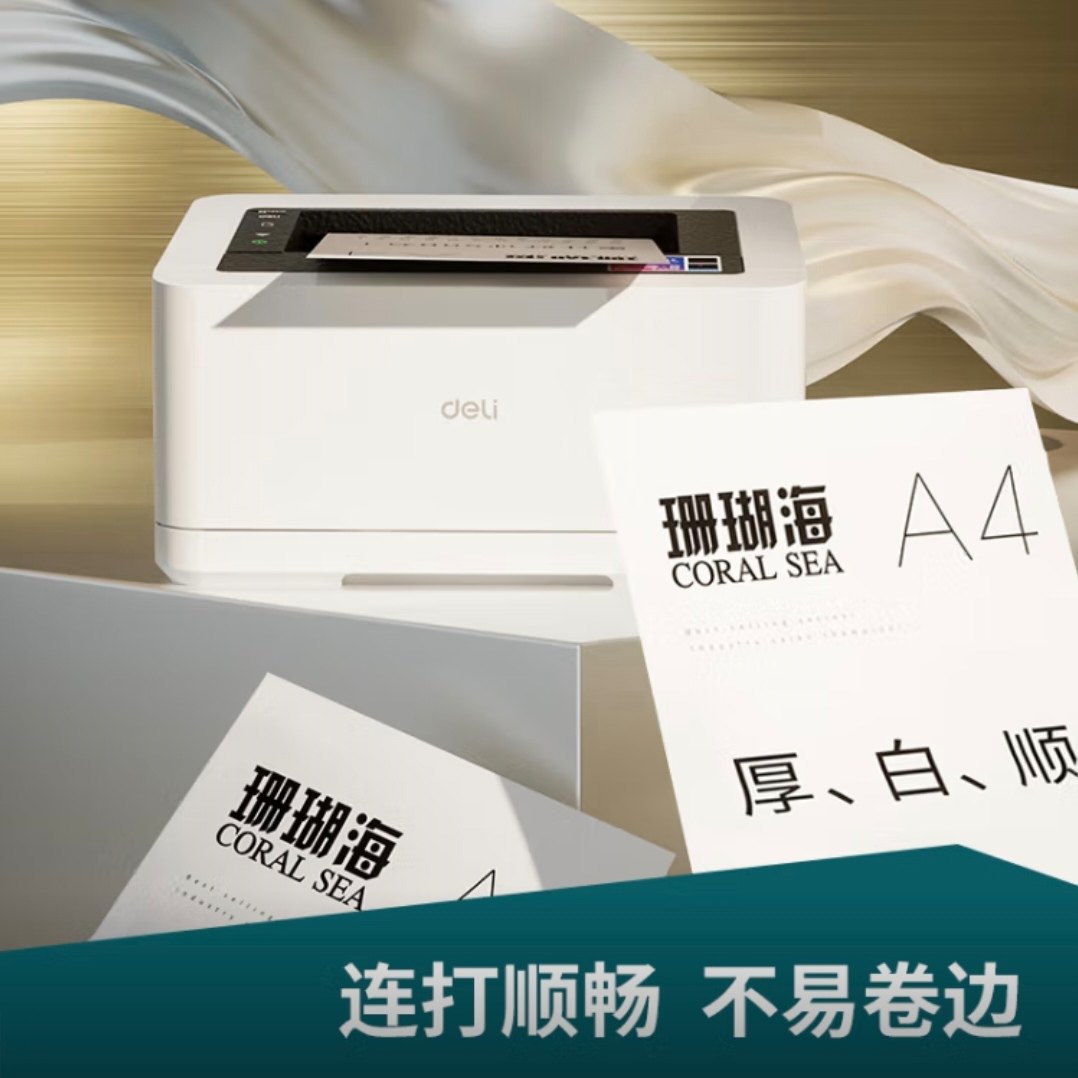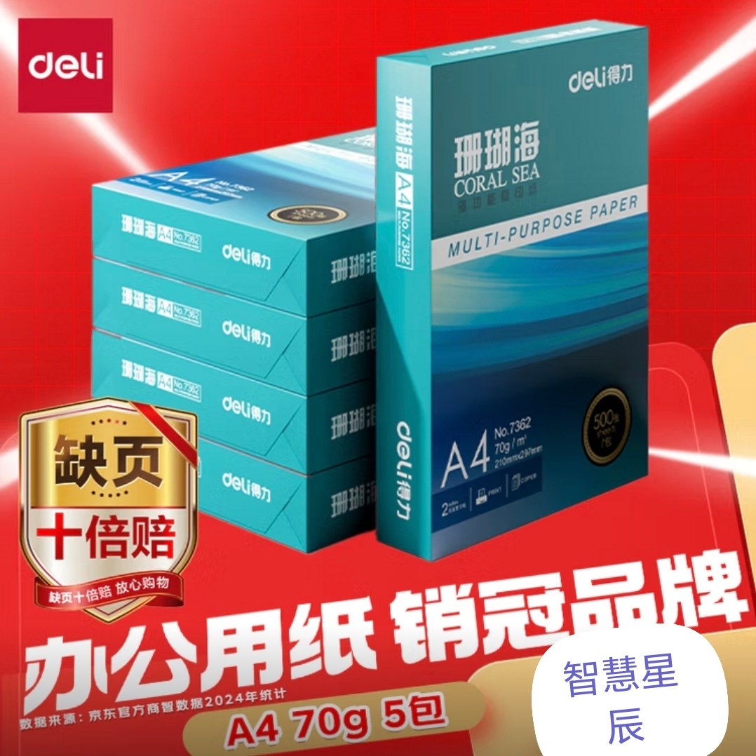 得力珊瑚海A4打印纸70克80克双面打印办公复印纸5包整箱2500张