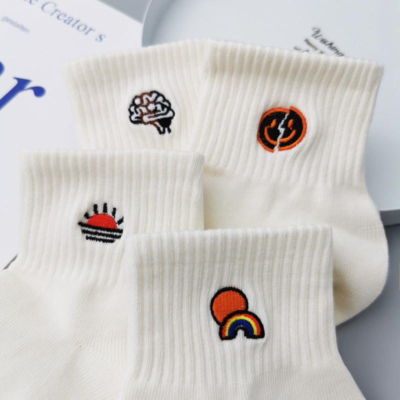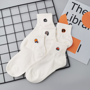 包邮 4双装 刺绣简约男生舒适透气袜子 男女短筒棉袜潮流时尚 春夏季