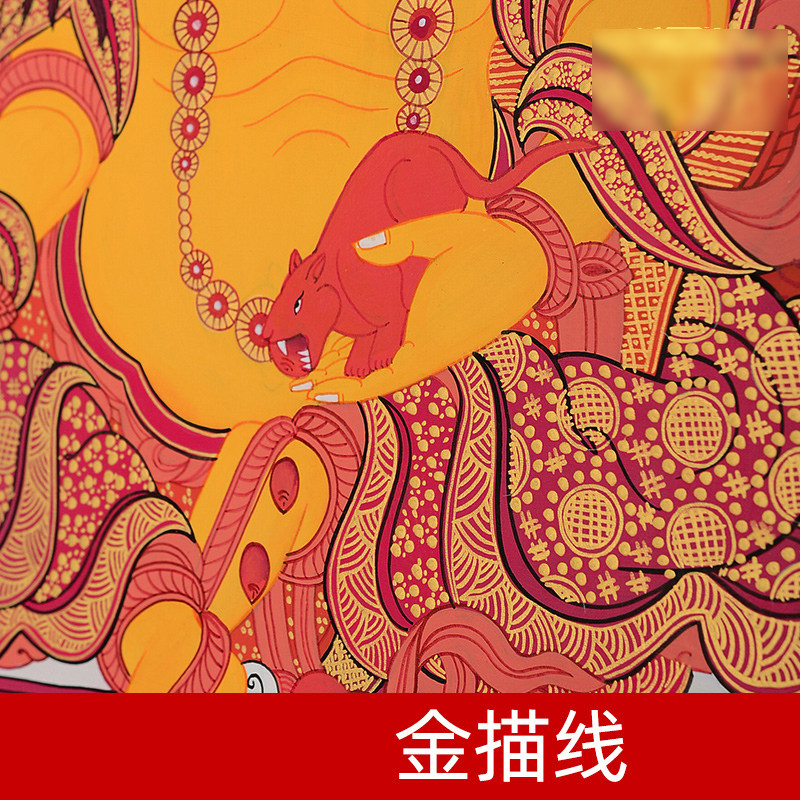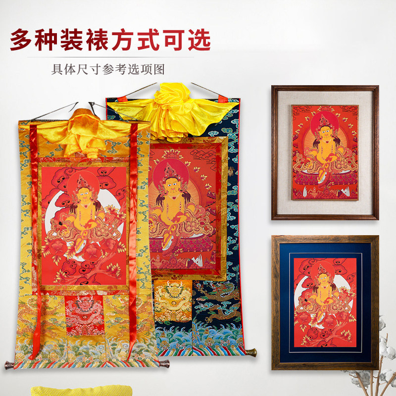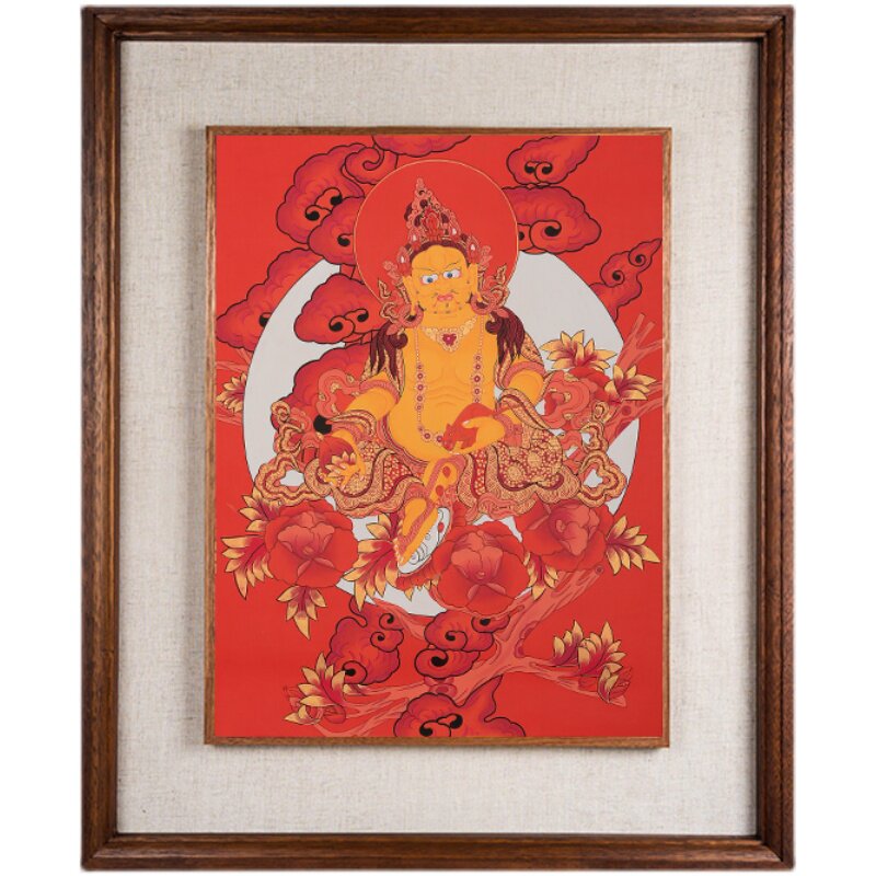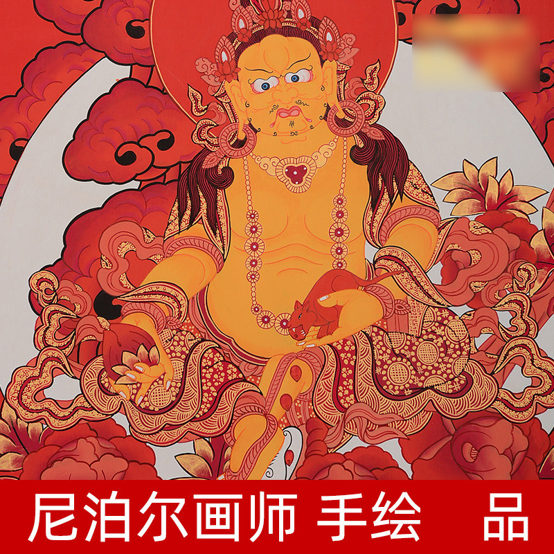 尼泊尔手绘黄财神唐卡现代墙壁客厅玄关装 饰矿物颜料挂画