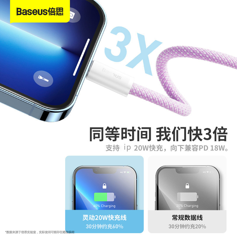 8plus 倍思数据线PD快充20W充电线适用于苹果iPhone13加长iPad12Proxsmax手机2m闪充typec转lighting