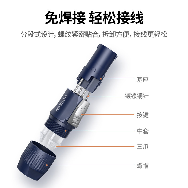 绿联 欧姆头功放音响线喇叭接头免焊插头四4芯卡农环形接头专业音箱舞台母对母航空NL4FC喇叭连接线音频配件