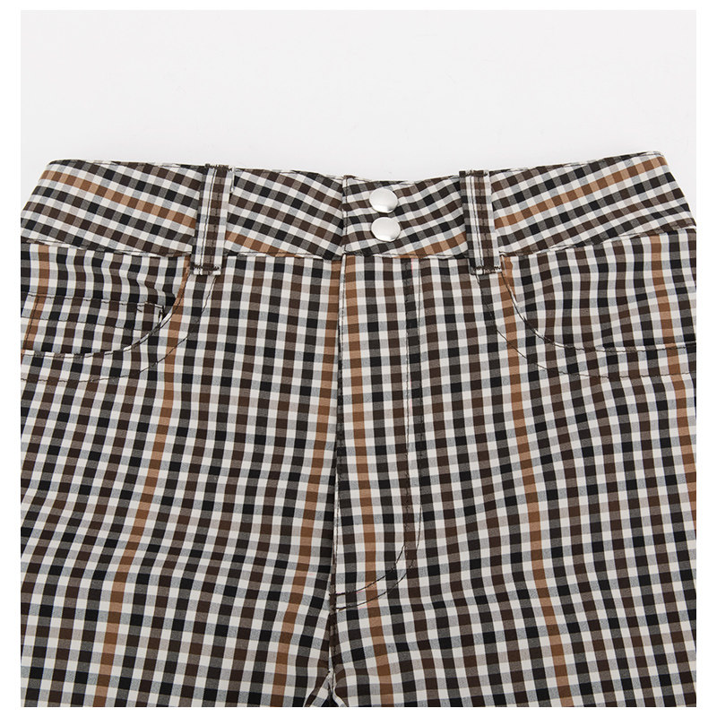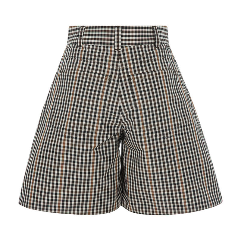 女士灰黑色经典 PLAN 格纹优雅复古日常休闲短裤 折扣