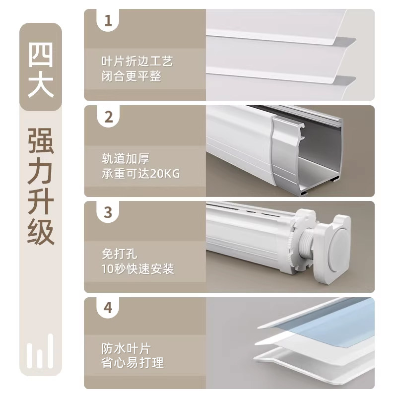 慕安娜卫生间专用防偷窥铝合金电动百叶窗帘免打孔浴室卧室升降帘