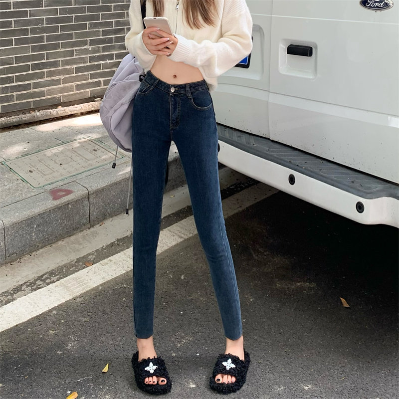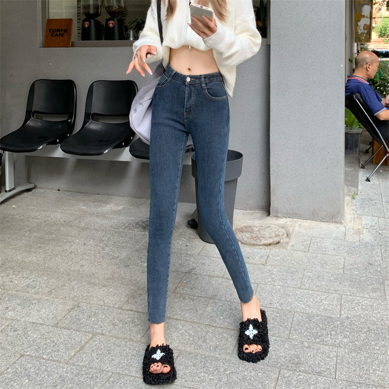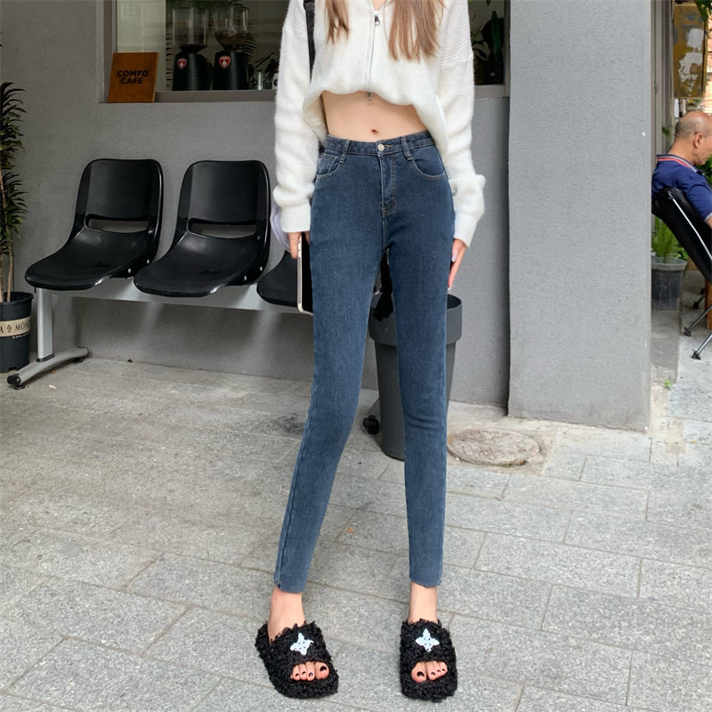 女150百搭高腰弹力紧身八分裤 XS码 子145cm九分小脚牛仔裤 小个子裤