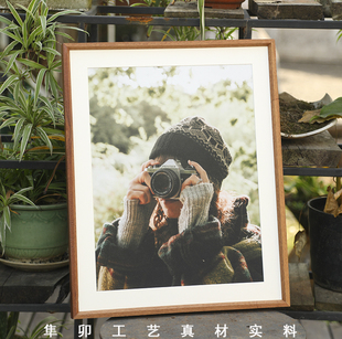 实木简约大画框挂墙装 裱空框国画书法裱框拼图海报摆台相框定制A4