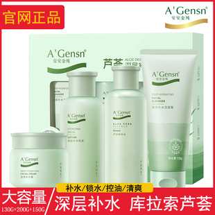 乳霜男女面部护理正品 安安金纯芦荟深层补水套装 爽肤水洁面乳保湿